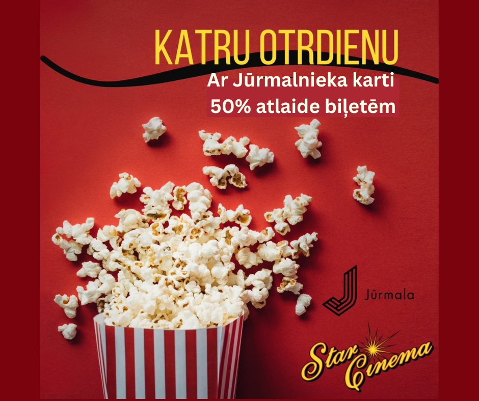 Katru otrdienu Jurmalnieka kartes īpašniekiem ir iespēja apmeklēt kinoteātri Star Cinema Jūrmala ar 50% atlaidi.