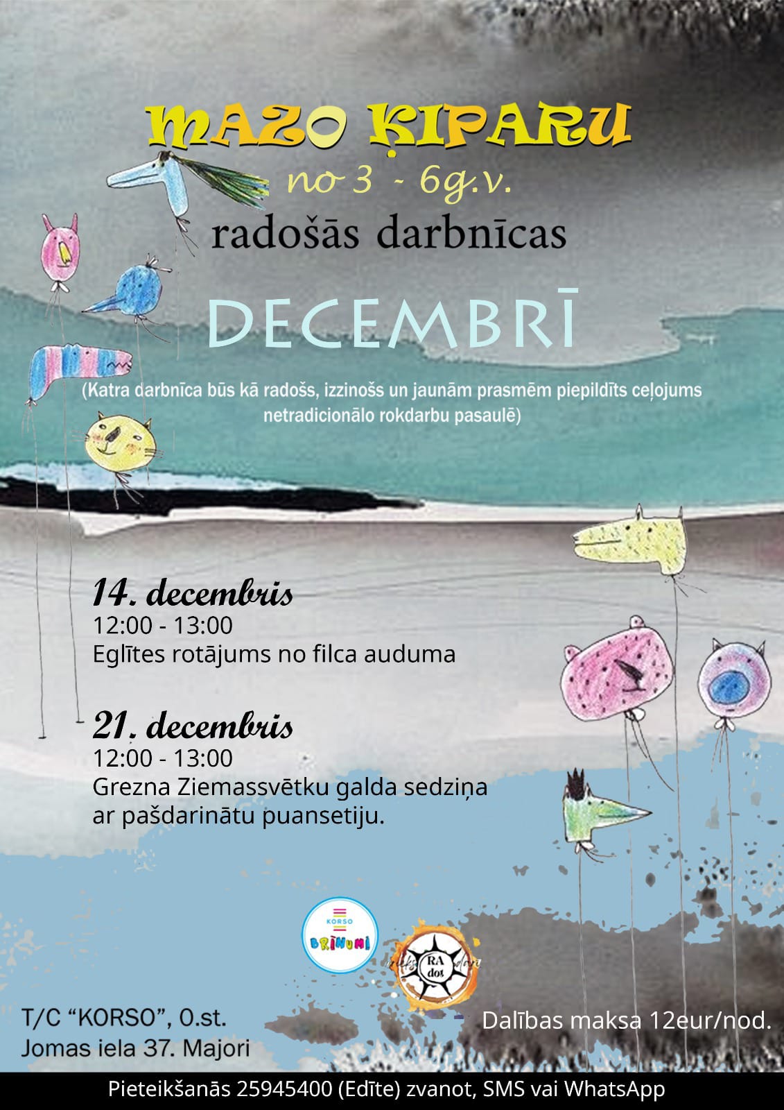 Aicinām mazākos radošos ķiparus uz divām sirsnīgām Ziemassvētku tematikas darbnīcām, kur bērni ne tikai darbosies ar rokām, bet arī attīstīs prasmes, fantāziju un radošo domāšanu KORSO Brīnumi Jūrmala