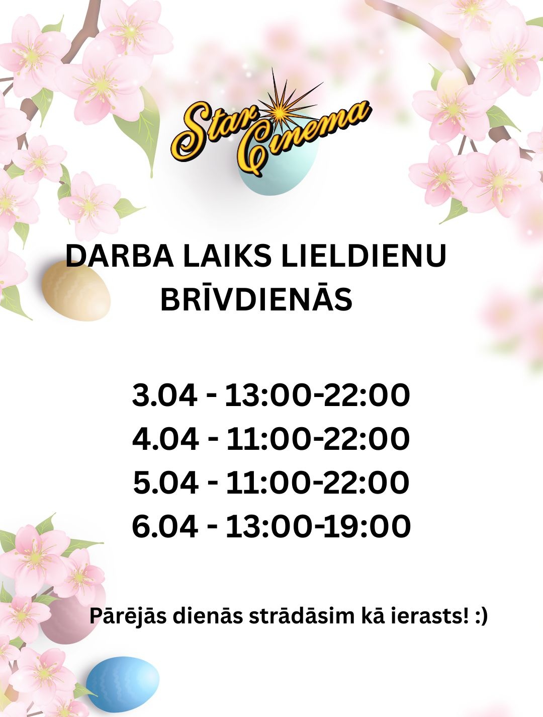 Izmaiņas darba laikos Star Cinema Jūrmala Lieldienu brīvdienās.