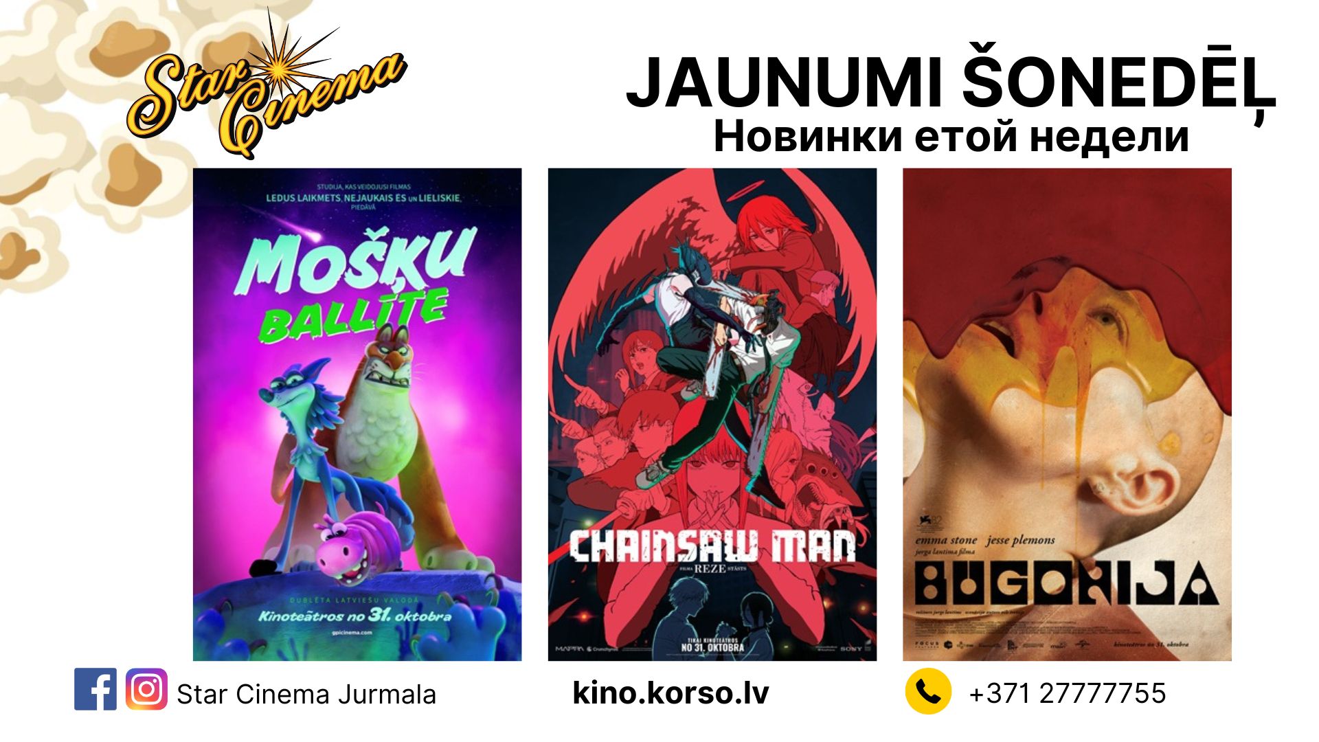 Jaunākas filmas un repertuārs kinoteātrī Star Cinema Jūrmala.