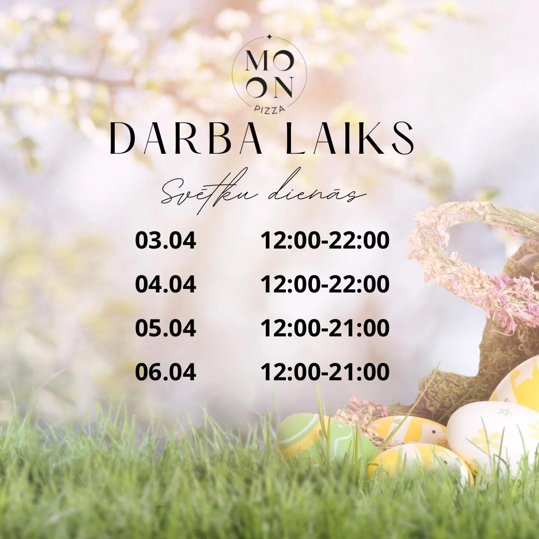 Izmaiņas picērijas Moon Pizza darba laikos Lieldienu brīvdienās.